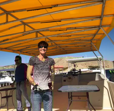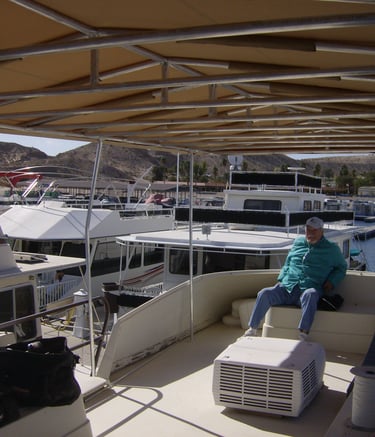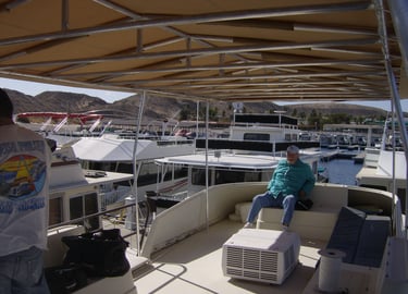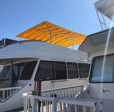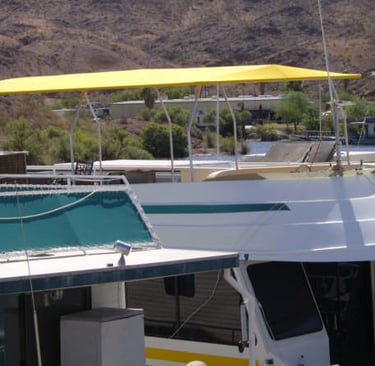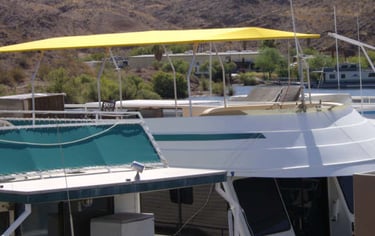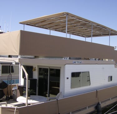 Our Party Tops are custom made to each houseboat. We have installed several on Fun-Country houseboats on Lake Mohave at Katherines Landing.